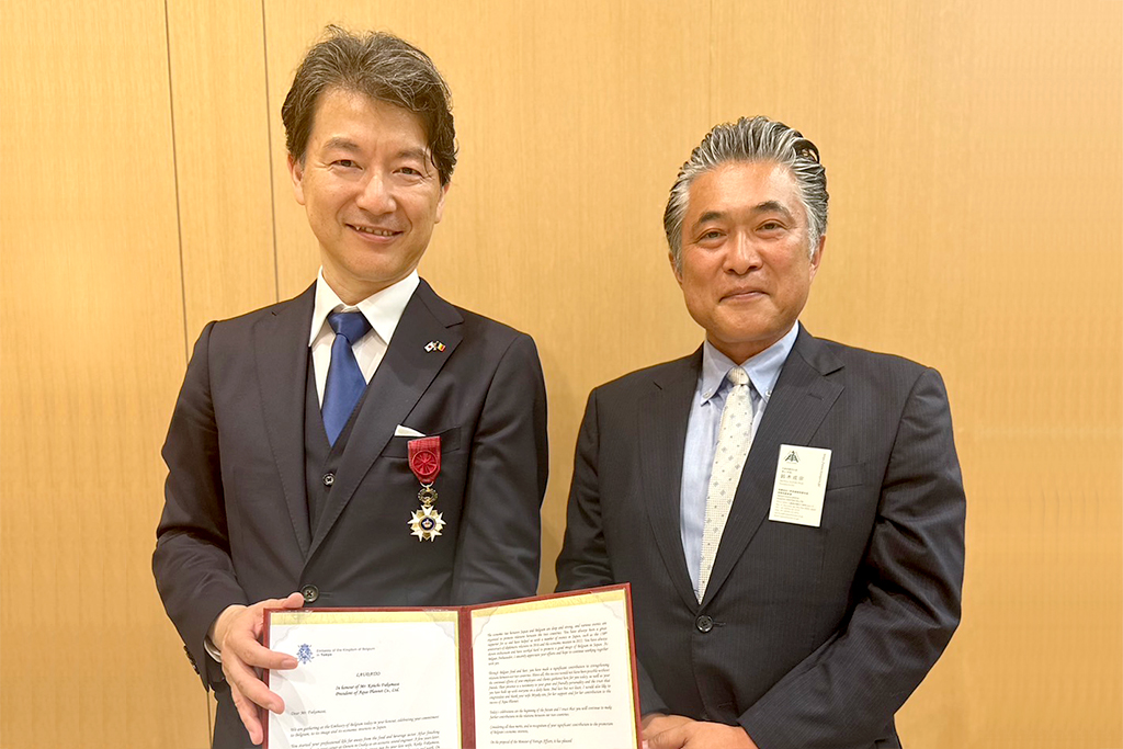 2024年7月8日、当店を運営するアクアプランネットの福政代表がベルギー王国より王冠勲章オフィシエ章を授与されました。叙勲式とその後の弊社設立30周年パーティで伊勢角屋麦酒の鈴木成宗社長と交流を深めました。